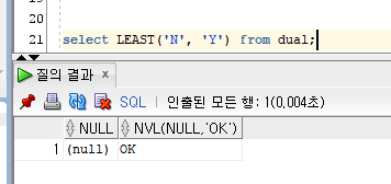 ex) select LEAST('N', 'Y') from dual;