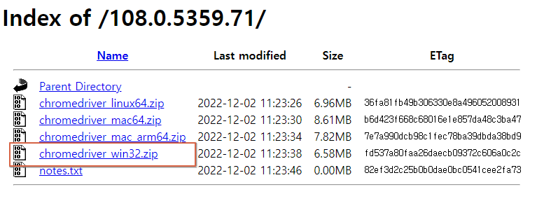 1) 크롬 드라이버 다운로드 : https://chromedriver.chromium.org/downloads