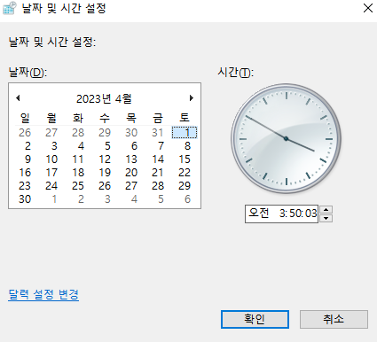 2. 그 다음은 윈도우에서 날짜 변경을 하면 된다.