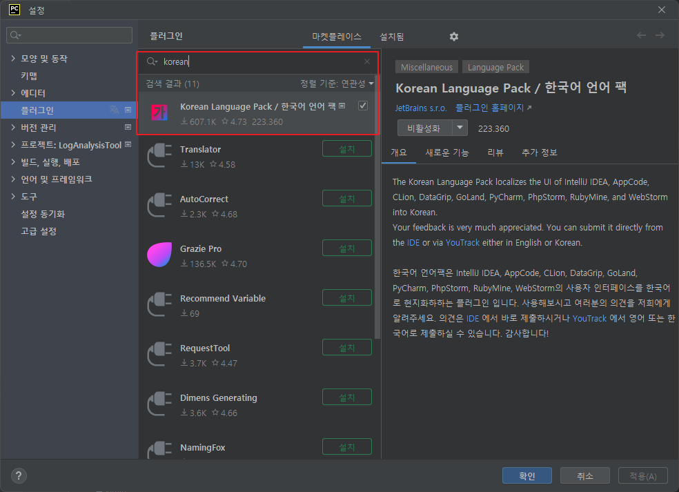 | [Python, Pycharm, 환경설정] 한글팩 설치 방법 (0) | 2022.11.14 |