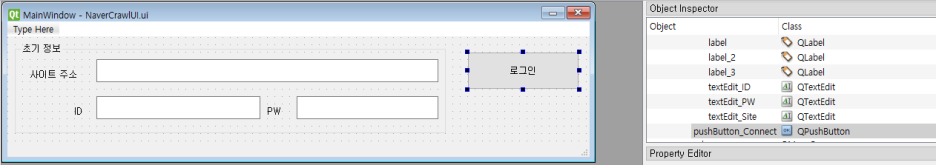 - 오브젝트 이름 : pushButton_Connect