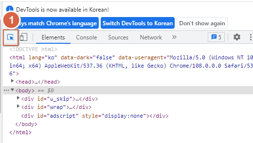 2) 마우스 화살표 처럼 보이는 "Select an element..." 버튼 클릭