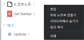 2. UpNote - 사이드바에서 숨기기 후 다시 표시하는 방법